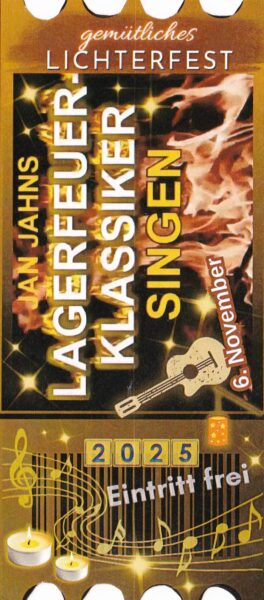 Ich habe gestern auf einem Lichterfest in der Seniorenresidenz Stellingen gespielt. Lichterfest, weil das Team dort mit den BewohnerInnen im Vorfeld jede Menge Laternen und buntbemalte Lichtertüten gebastelt hatten. Und als Eintrittskarte gab es das hier (selbst gestaltet):